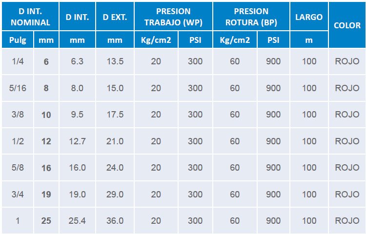 APLICACIÓN: Una manguera Premium para todo tipo de uso. Apta para transportar agua, aire, aceites, combustibles y otros solventes comunes.
